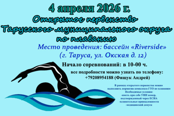Открытое первенство Тарусского района по плаванию 25.03.2026 в рамках данных соревнований можно выполнить норматив комплекса ВФСК ГТО!Положение плавание 04.04.2026